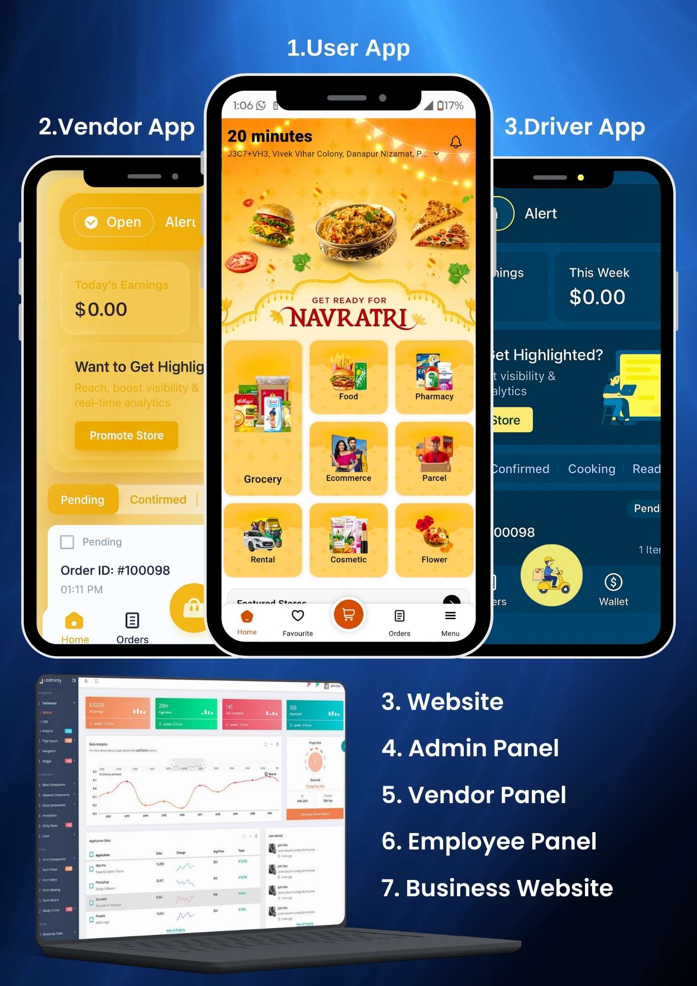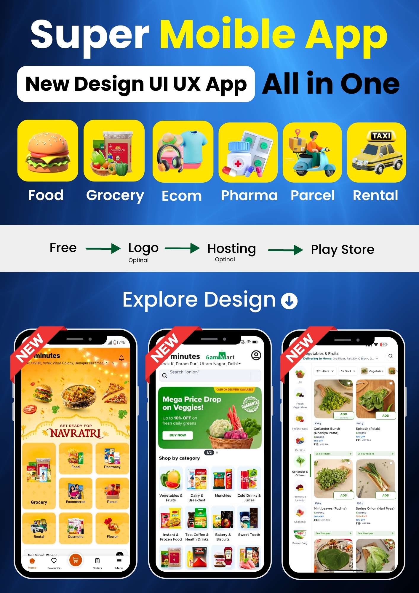A modern Blinkit style Multi Vendor, Multi Module Super App designed for food, grocery, pharmacy, services, and eCommerce — all in one platform. Includes User, Vendor, Delivery apps and a powerful Admin Panel. Fast, customizable, and perfect for launching your own hyperlocal super app.